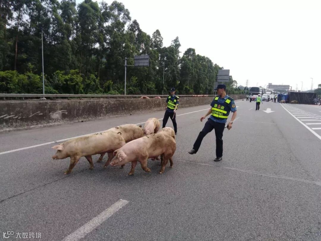 与猪“搏斗”的过程也并非那么容易,“这一头猪往来车方向跑,我们只好先拦车,后追猪,把猪先赶到应急车道上。”现场执勤的路政员说。猪最远跑出近一公里,交警和运猪车司机也一起来帮忙,用上了牵、撵、推、搡、拽,最终才把它们全部驱赶至安全地带。