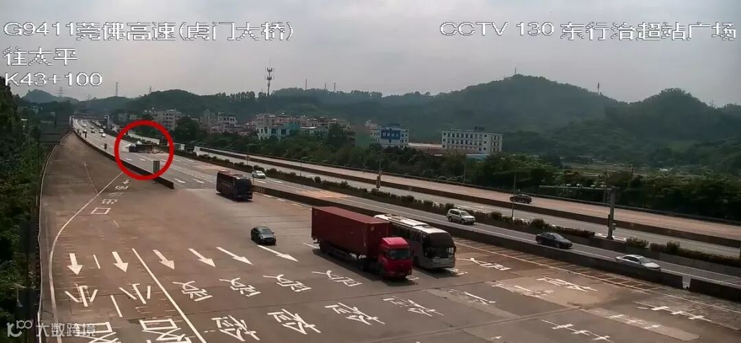 此时,正在紧盯着路面的虎门大桥监控中心监控员发现这一情况,立即通知巡路的路政员和清障人员、广州交警前往现场施救,路政部门派出了1辆拖车和1辆吊车,交警出动2辆警车,不到五分钟的时间,救援人员和车辆及时到位。