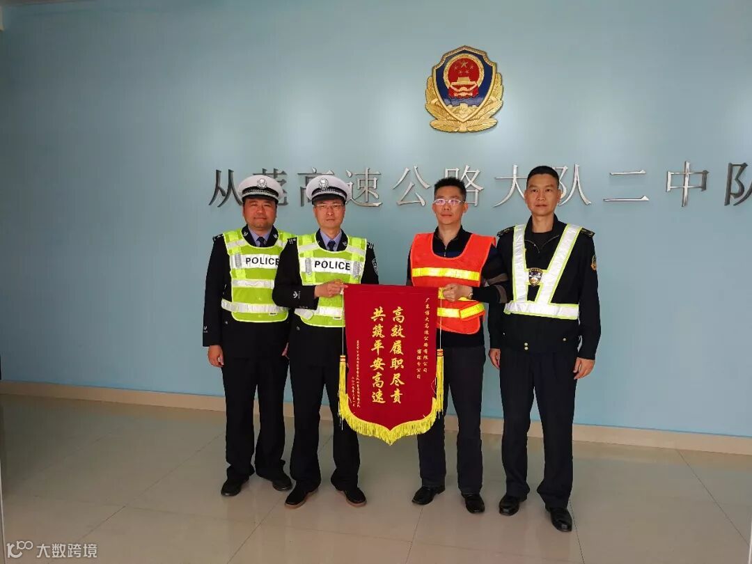 3月初,东莞市从莞高速交警大队向博深路政大队赠送了一面写着“高效履职尽责 共筑平安高速”的锦旗,对博深在春运期间给予的大力支持表示感谢。