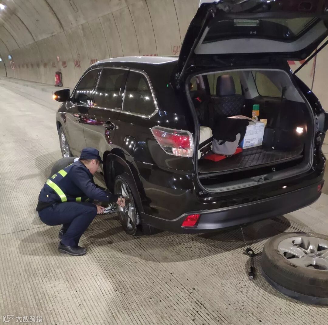 大年初五,博深高速潼湖隧道内,路政员练建祥、彭志毅帮助司机更换轮胎,使车辆能快速驶离隧道,避免引发交通事故,确保司乘的人身安全。