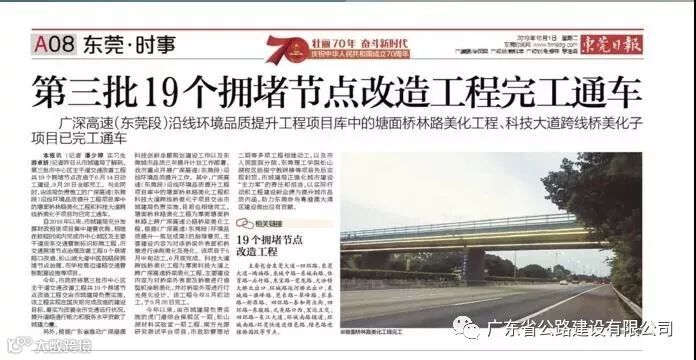 在举国欢庆新中国成立70周年之际,广深高速厚街南立交至新联立交扩建车道、厚街南行服务区匝道扩建工程、麻涌和新桥双向停车区等重要交通设施顺利完工并正式投入使用,为人民群众在国庆节期间的美好出行提供了保障,以实际行动向新中国成立70周年献礼!
