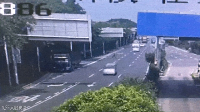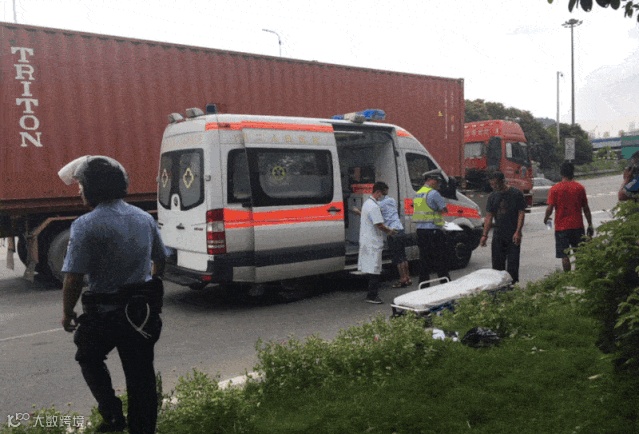 突然,在广珠段亭角收费站入口匝道与南沙黄阁南路分汇处,一辆集装箱车与一辆三轮摩托车发生碰撞,造成三轮摩托车侧翻并窜起火苗,现场浓烟滚滚。三轮摩托车司机瞬间被大火包围,过往车辆和路人吓得纷纷避让,情况十分危急!