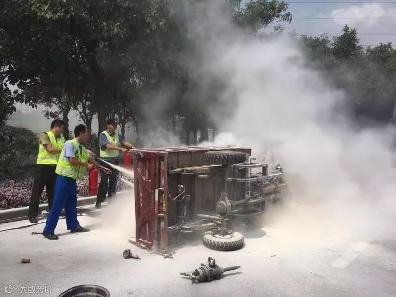 三轮车侧翻后起火
