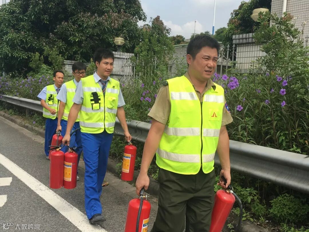 工作人员拎起灭火器冲向事故现场