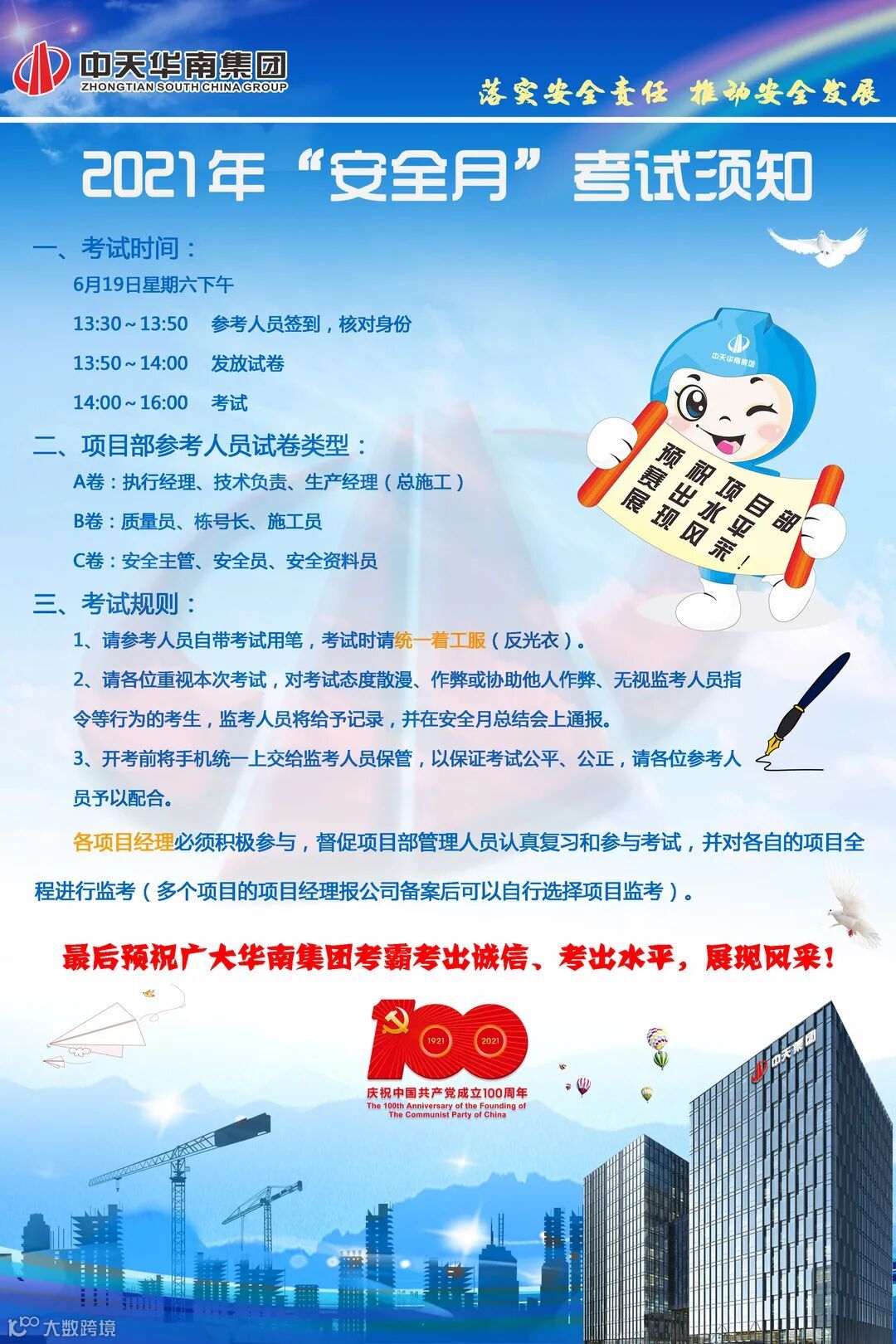 围绕 “落实安全责任,推动安全发展”主题,6月17日-19日,中天华南集团组织开展了2021年度全员党史与安全知识考试,从机关员工与项目部员工两方面,分难度、分领域、分专业制定了多套考卷,根据员工相应的岗位职责进行针对性测试。