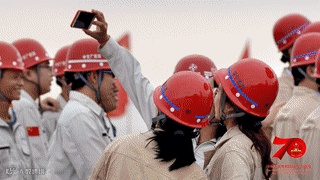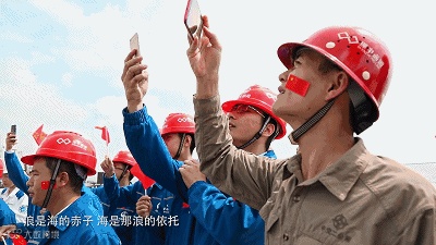 掏出手机拍照留念、齐声投入高歌,辛劳作业了一天的建设者们,用最饱满的热情,唱出爱国心声、唱出劳动之声、唱出新时代建设者的最强音。