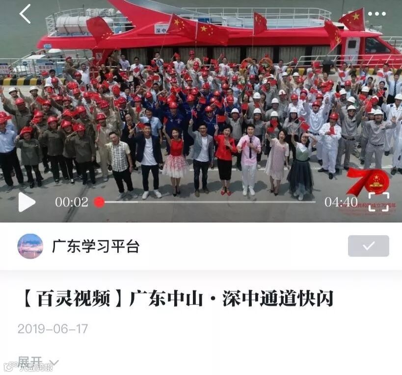 在学习强国APP上可以观看深中通道快闪视频