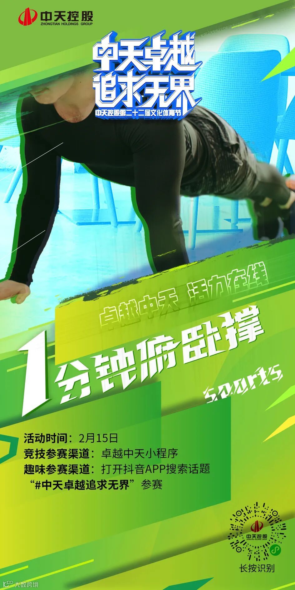 卓越中天 活力在线 春节居家也可以做运动达人!三天一场线上运动PK赛,挑战别人,更挑战自己,在线展示中天活力。