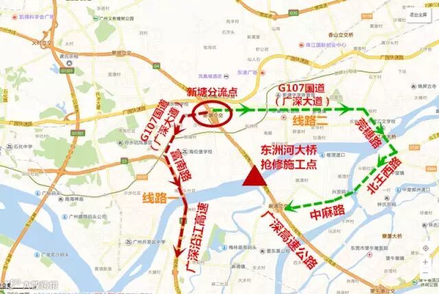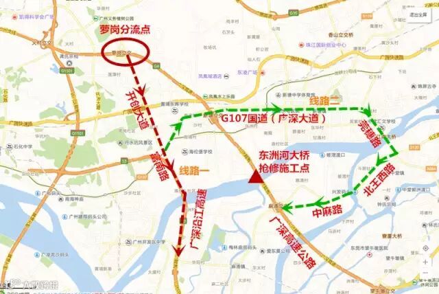 通过北环高速、北二环高速、华南快速路等计划前往广深高速公路的司乘人员,在广深高速公路东洲河大桥深圳方向全封闭施工期间,建议另行选择路线,择道出行。