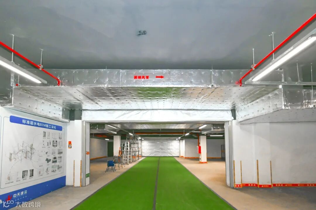 地下室管综由设计中心全面进行BIM建模深化,提前审查图纸设计问题,对各专业管线走向进行优化、分散管线综合集中排布,交叉部位分层布置、简洁美观,有效提升了空间观感等。