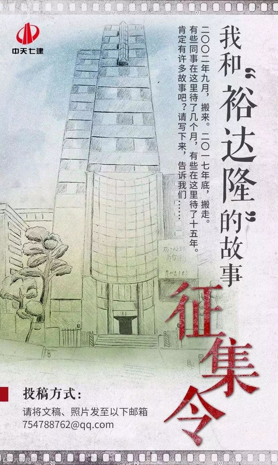 十五年来,“裕达隆”见证了七建的每一步发展,见证了很多人的青春、梦想和努力,也见证了很多人的成长和进步。为此,我们发起“我和'裕达隆'的故事”征文活动。