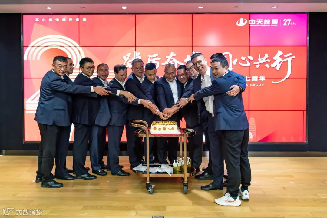 为共同庆祝中天控股集团27周年司庆日,会议现场准备了司庆日庆贺蛋糕,并由吴险峰董事长带领项目总代表以及当天生日的同仁一同上台切蛋糕,气氛喜庆而热烈。