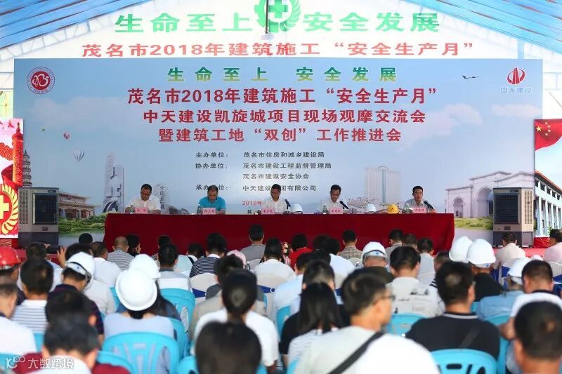 6月20日上午,茂名市2018年建筑施工“安全生产月”中天建设凯旋城项目现场观摩交流会暨建筑工地“双创”工作推进会顺利召开,茂名市、县两级住房城乡建设部门分管负责人、质安科室负责人、安监站站长,市建管局相关负责人及安全监督科室全体人员,茂名市二级以上施工、监理企业分管负责人,在建工程项目负责人等350余人参加会议。