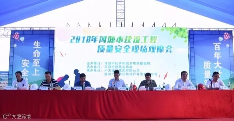 6月20日上午,2018年河源市建设工程质量安全现场观摩会在河源雅居乐花园二期五区四组团项目部隆重召开。河源市住房和城乡规划建设局副局长王永汉、安全生产监督管理局副局长李少辉、雅居乐河源事业部总经理吴玮、中天七建总经理助理兼深圳分公司总经理吴玉晓、河源市五县一区建设工程主管部门及建设单位同行等500余人出席会议。