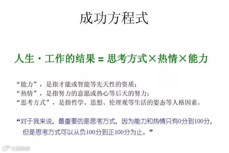 吴总为学员讲解了稻盛和夫的管理哲学。吴总首先给大家解读了稻盛和夫的成功方程式,强调了思维方式的重要性。