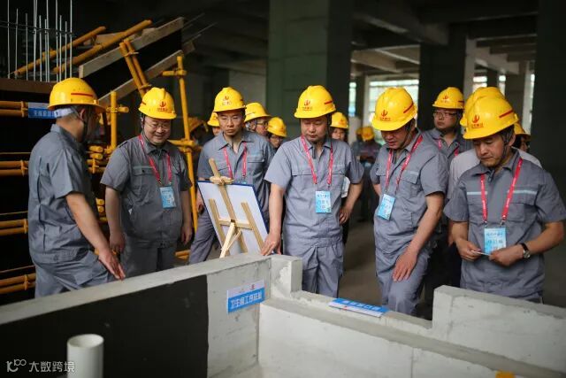 全体与会人员来到中天七建承建的碧桂园翡翠山城综合体峰汇项目观摩。项目展示了在碧桂园的高周转要求下,使用传统工艺体系,如何实现项目工期、质量、安全管理目标。
