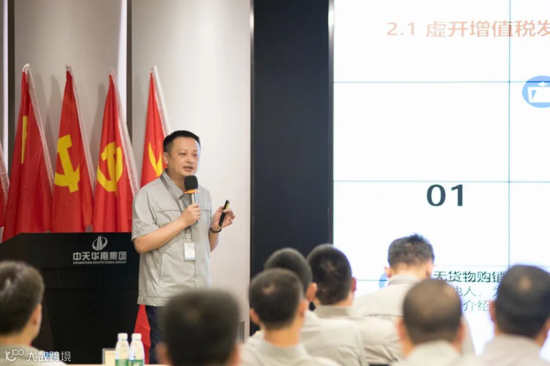 华南集团总裁助理朱建明做了主题为《项目税务管理》的分享,从项目税务管理的目的、税务管理失控的风险、收入合同税务管理、项目成本合同税务管理、项目税务数据管理五个方面进行了全方位的讲解分析,帮助学员提升项目税务策划实操的能力。