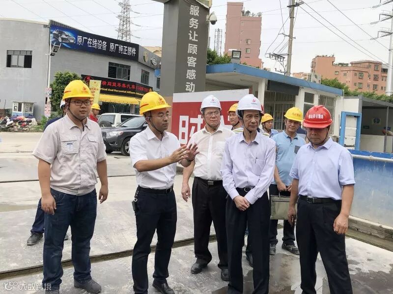 7月25日下午,广东省住房和城乡建设厅厅长张少康、副厅长刘玮及质安处处长林兆雄等一行来中天七建承建的佛山时代水岸项目检查指导工作,重点检查工程质量安全管理和施工扬尘治理等工作。佛山市住房和城乡建设管理局局长林国荣等领导、中天七建总经理助理陈稳德及佛山片区负责人俞锋等陪同。