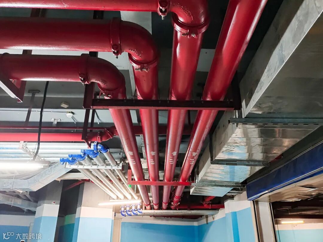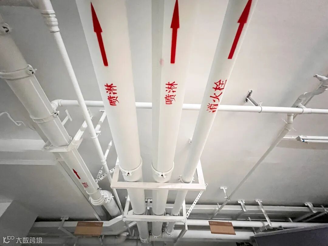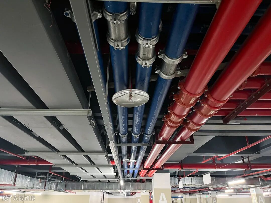 地下室标识清晰,施工前通过对管线综合平衡布置、深化设计,并采用激光测试仪投点拉线控制,达到管道排列整齐、层次分明,支架设置合理、间距一致。