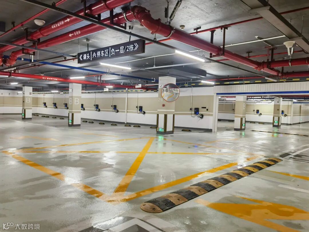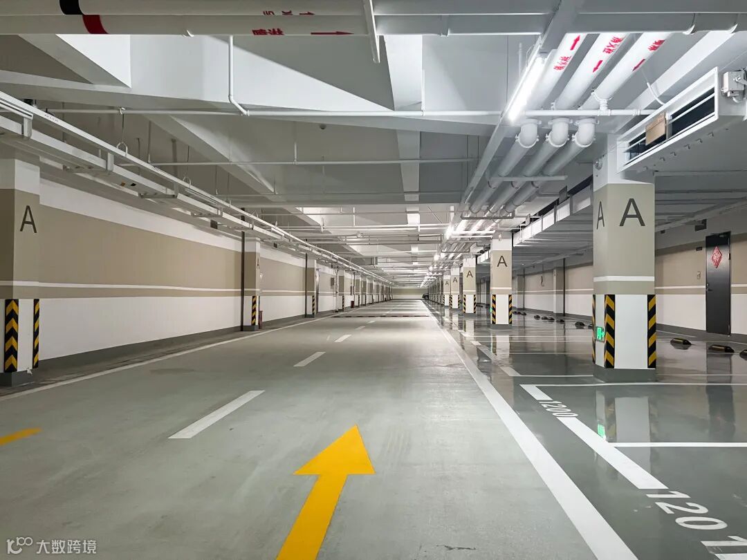 地下室采用金刚砂耐磨地面,地面彩色线条标明行驶方向及停车位,车库停车位安装挡车垫,方便出入。