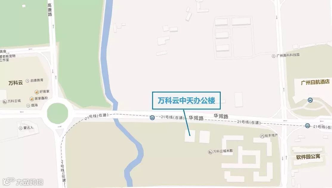 1、位置:中天办公楼位于广州市天河区万科云城(华观路与高唐路交汇处)。