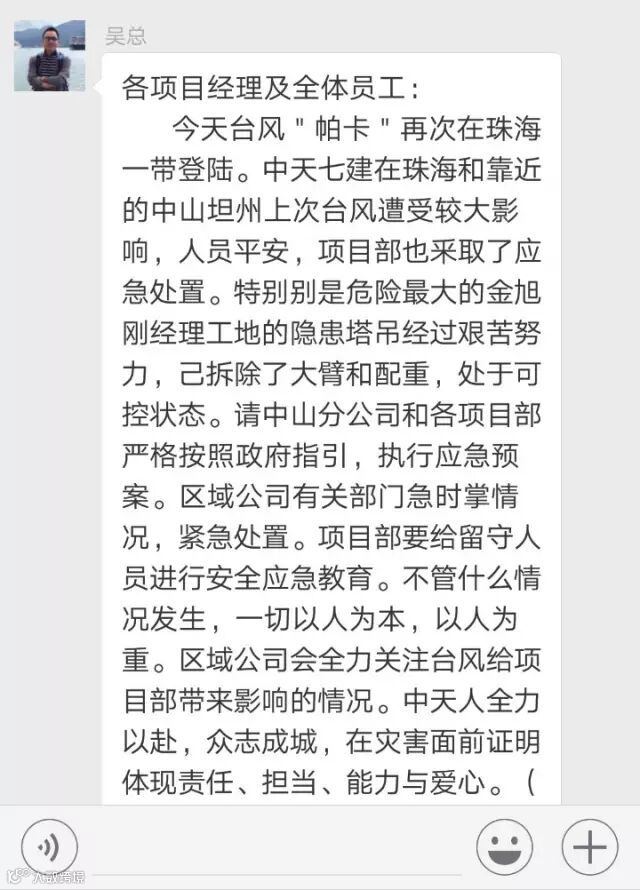 七建上下时刻警惕,早有预防。在“帕卡”登录前启动台风应急机制,确保所有项目人员安全,将损失降至最低。