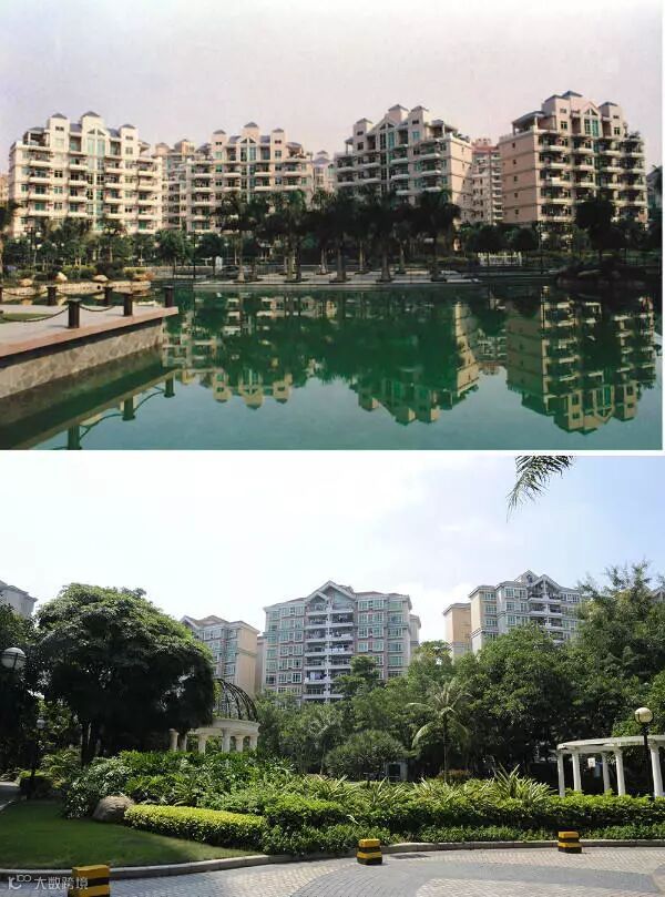 下面两张照片分别是2000年和2017年的中山雍景园小区,十多年过去,时光已久,小区依然如新,充满活力。这就是建筑的魅力,倾注了建筑人的心血与汗水,今天我们要讲述的就是当年建设这座小区的故事。