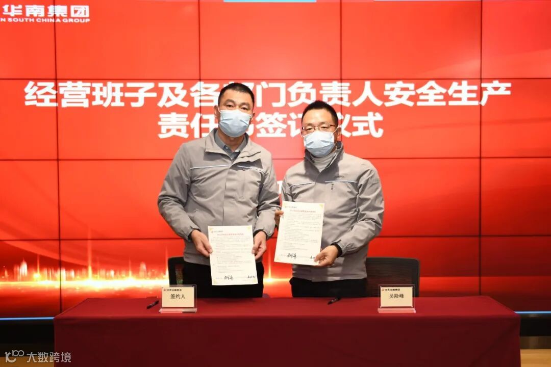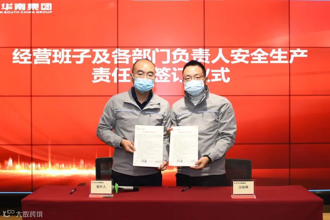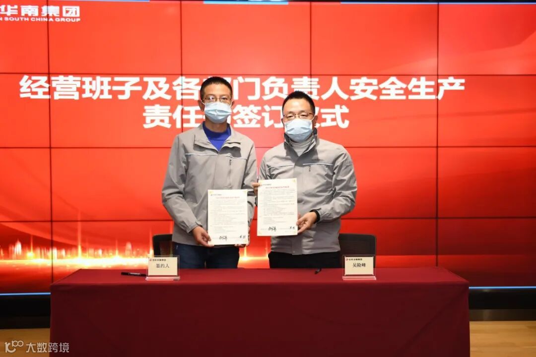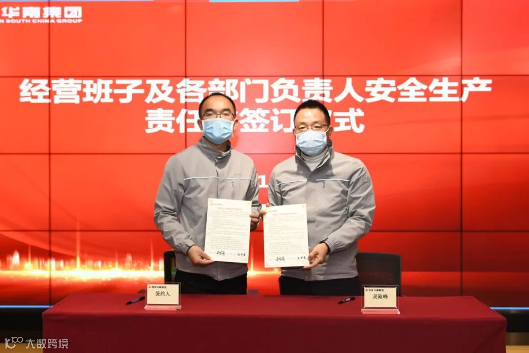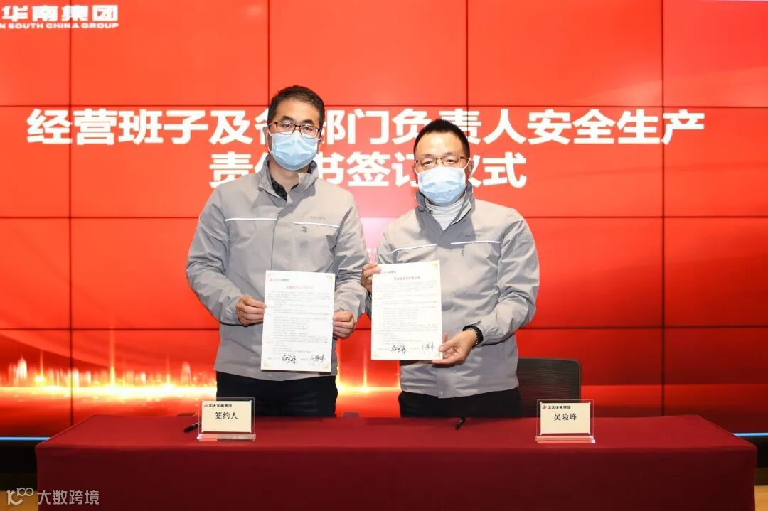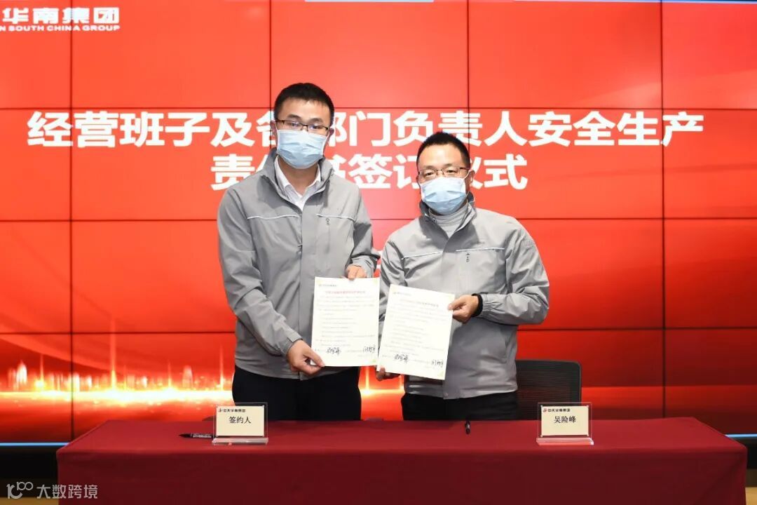 华南集团董事长吴险峰与经营班子成员、分公司及片区负责人、区域机关部门总经理签订了安全生产责任书。