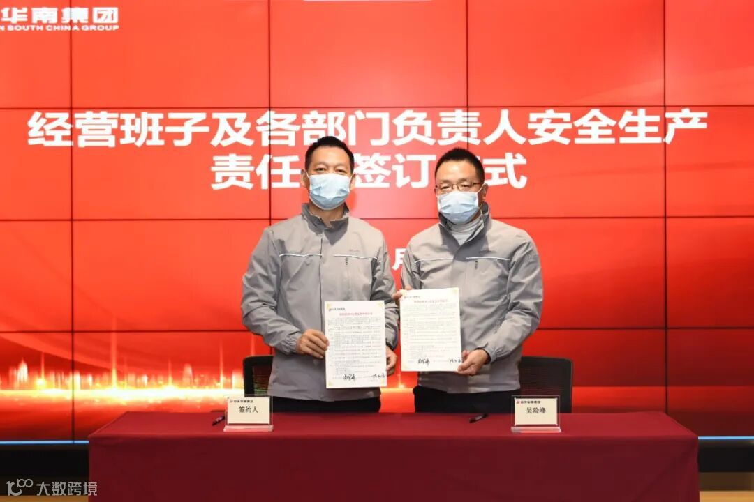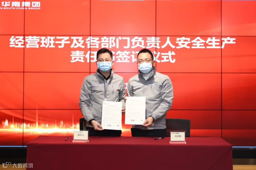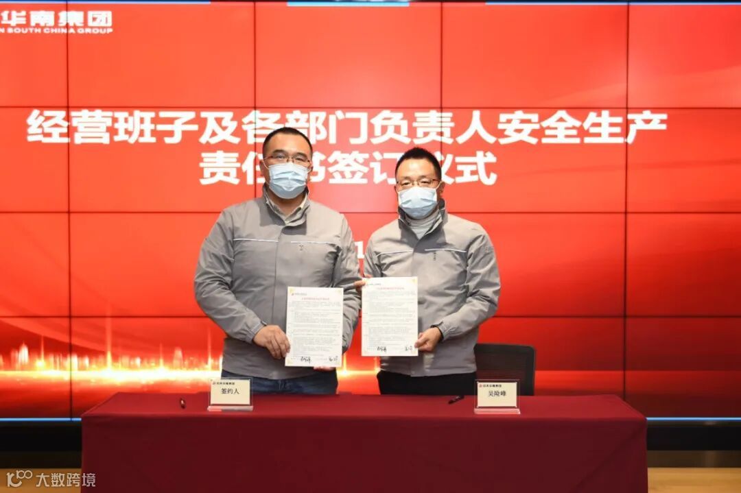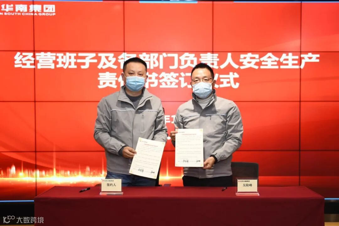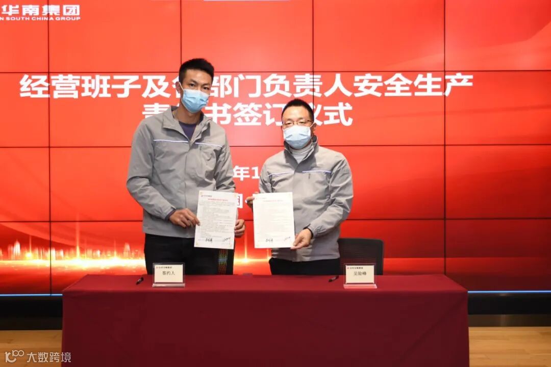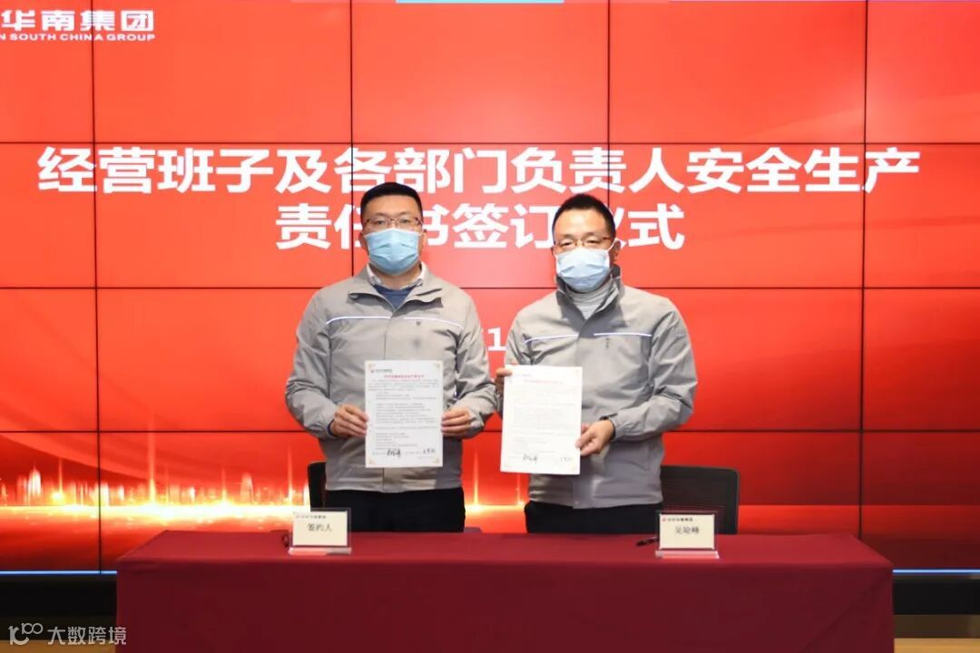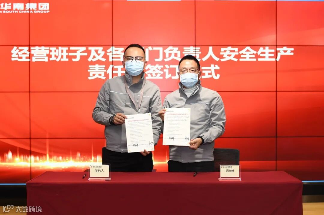华南集团董事长吴险峰与经营班子成员、分公司及片区负责人、区域机关部门总经理签订了安全生产责任书。