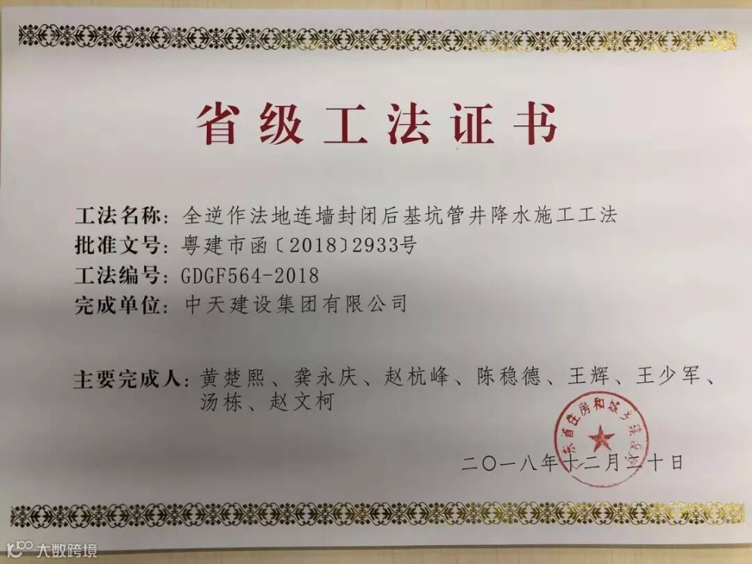随后,赵杭峰转战佛山万科金域花园、万科金色诚悦花园、万科悦都荟等项目,在技术负责岗位上,解决了全现浇结构体系及结构楼面高精度地面、BIM场地布置与BIM5D运用建模、逆作法土方开挖前施工降水、标准层铝模施工阶段增加悬挑工字钢等多项技术难点。其中最考验他这个新晋的技术新星的项目便是现在的万科悦都荟项目,该项目为大总包模式,从桩基、基坑支护、土方开挖开始均由我方施工,是佛山第一个逆作法施工项目,并且位处市中心紧邻地铁站,周边建筑物多,场地狭窄,地铁距离基坑最近只有3米,基坑深度19.7米,一柱一桩施工,土方开挖量大,基坑降水周边沉降变形控制难度大,施工十分困难,工期特别紧张。赵杭峰带领技术团队,积极解决困难,采取分阶段进行平面规划,动态管理;施工前优化配合比,减少水泥用量;选择专业加工厂家和有经验的劳务班组进行施工,做好施工方案编制、审核及论证;采用定型化调垂平台、“全逆作法地连墙封闭后基坑管井降水”等技术手段,缩短了工期,保证了质量,满足了销售节点,得到甲方的认可。悦都荟项目获得2018年万科上半年安全文明评比第一名;2018年佛山工程系统第四季度总结大会安全文明最佳项目。他本人也在该项目上获评2018华南集团优秀技术负责人,获得省级工法1项(全逆作法地连墙封闭后基坑管井降水施工工法),2018年第四期中天施工技术中:刊登技术论文《基桩自平衡静载技术应用》。
