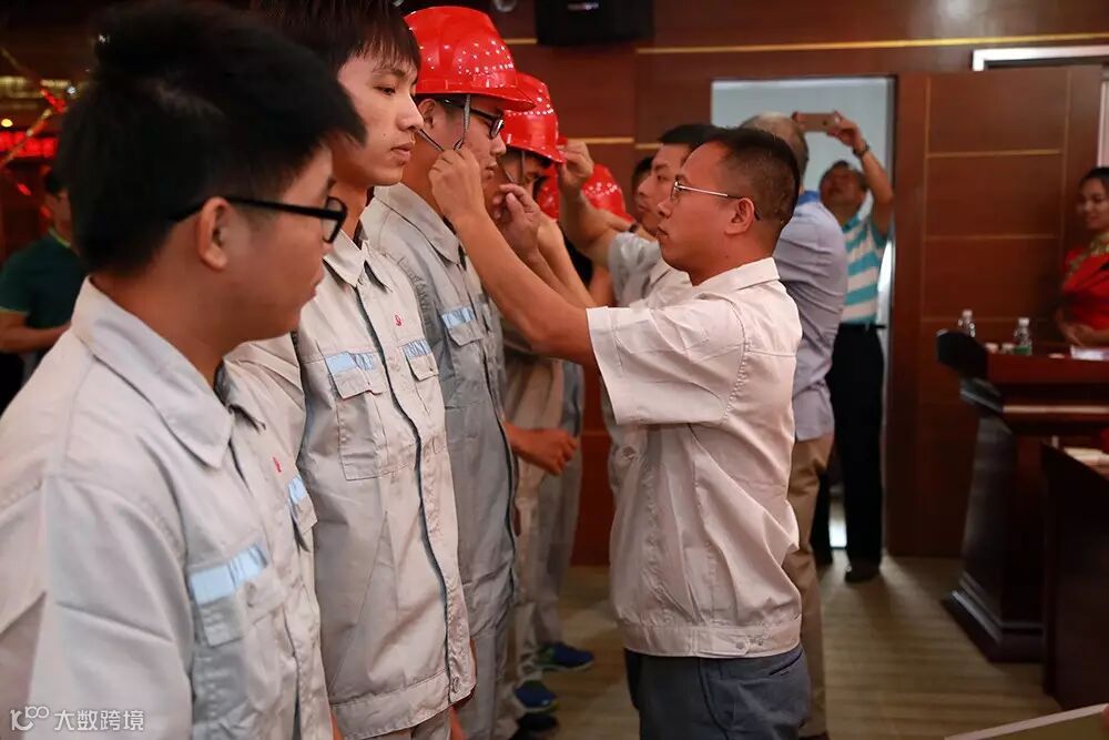 (学校与企业导师为学徒戴安全帽)
