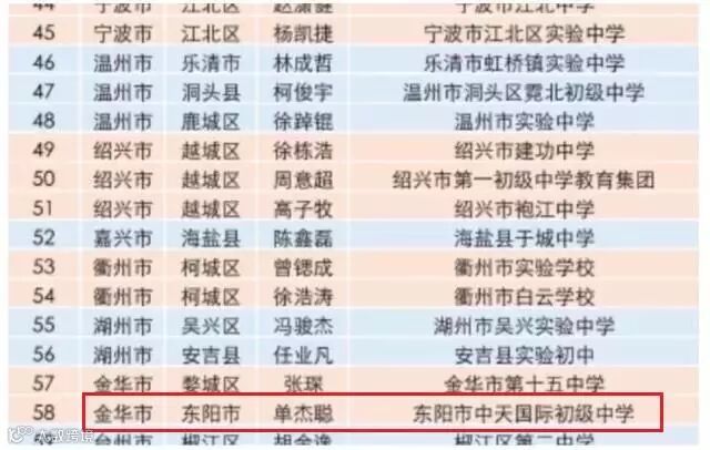 PS:单杰聪童鞋就读于中天国际初中,他可是东阳首个且唯一被录取的学生哦 ~·~