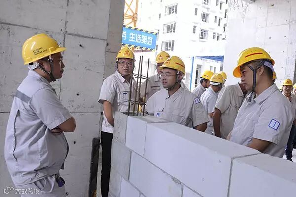 与会人员在松朗花园观摩了场容场貌、主体施工质量以及建筑材料集中加工等区域,其中铝模板的深化设计、普通砌块高精砌法、材料的集中加工、水电电箱线盒和pp-r管的预埋、消防水永临结合以及可拆卸式防护通道等项目亮点给人留下了深刻印象。