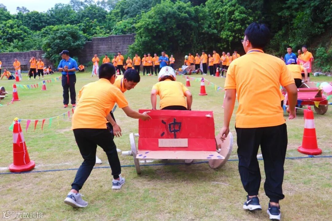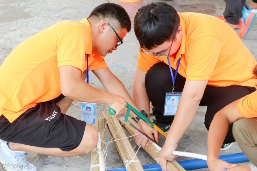 以小组形式进行的PK,学员们全身心投入到项目中。比如:众人拉鼓运饮料,悬空的布上运球进洞,加工、组装F1赛车等活动,让学员们领悟到领队统筹、队员配合的意义。在团队中要有一个优异的领导班子,不仅需要与队员沟通协调、分配任务,而且必须在出现问题时,能够快速高效地制定解决方案,去实践,这样才能引领大家在有限的时间内完成上级指派的任务。完成任务的前提又是人与人之间的互相信任,以及建立在信任之上的团队合作。同时,线上拉票环节使我们的拓展获得了场外5000多人的支持。