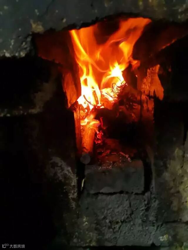 在灶台中燃烧的柴火