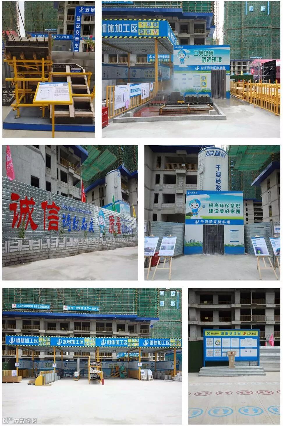 随后,与会人员在专业人员的带领和讲解下,通过参观样板工程、图文演示,参与体验式项目等方式进行观摩交流。整洁干净的工地环境、细致贴心的文化氛围、堆放整齐的建筑材料、示范工艺的标准展示给观摩人员留下良好的感官印象。中天在“集流插”等标准化体系的建立、VR虚拟安全体验区、立体的喷雾降尘设施、人脸识别系统、楼层垃圾清运管道系统等做法得到参会人员的一致好评。在现场观摩中,领导一行对中天在工程质量、安全文明施工、关爱民工、企业文化等方面做出的积极尝试和创新做法给予了较高的评价。