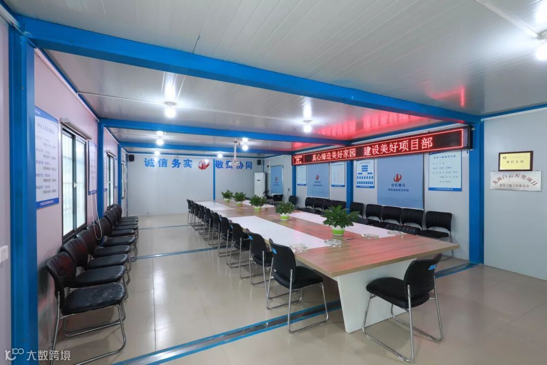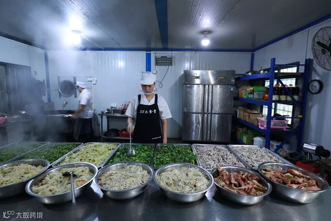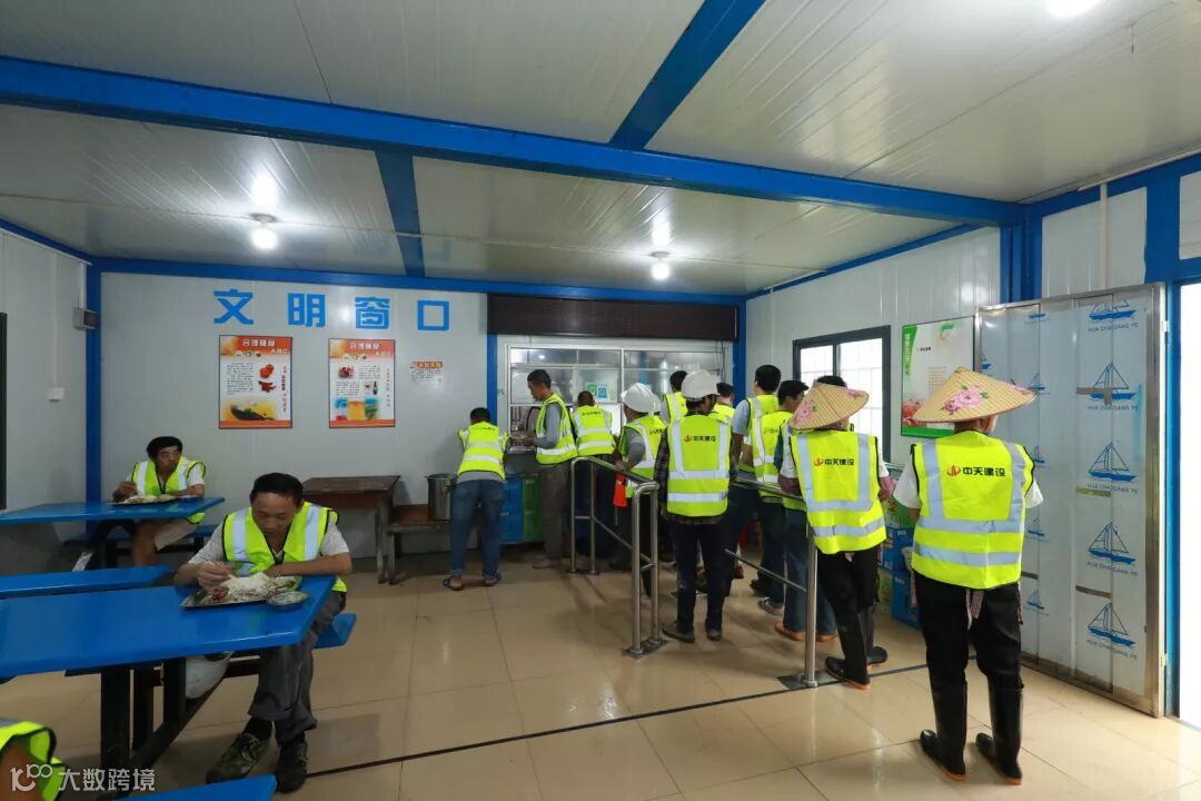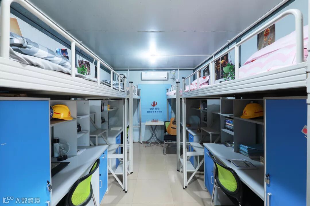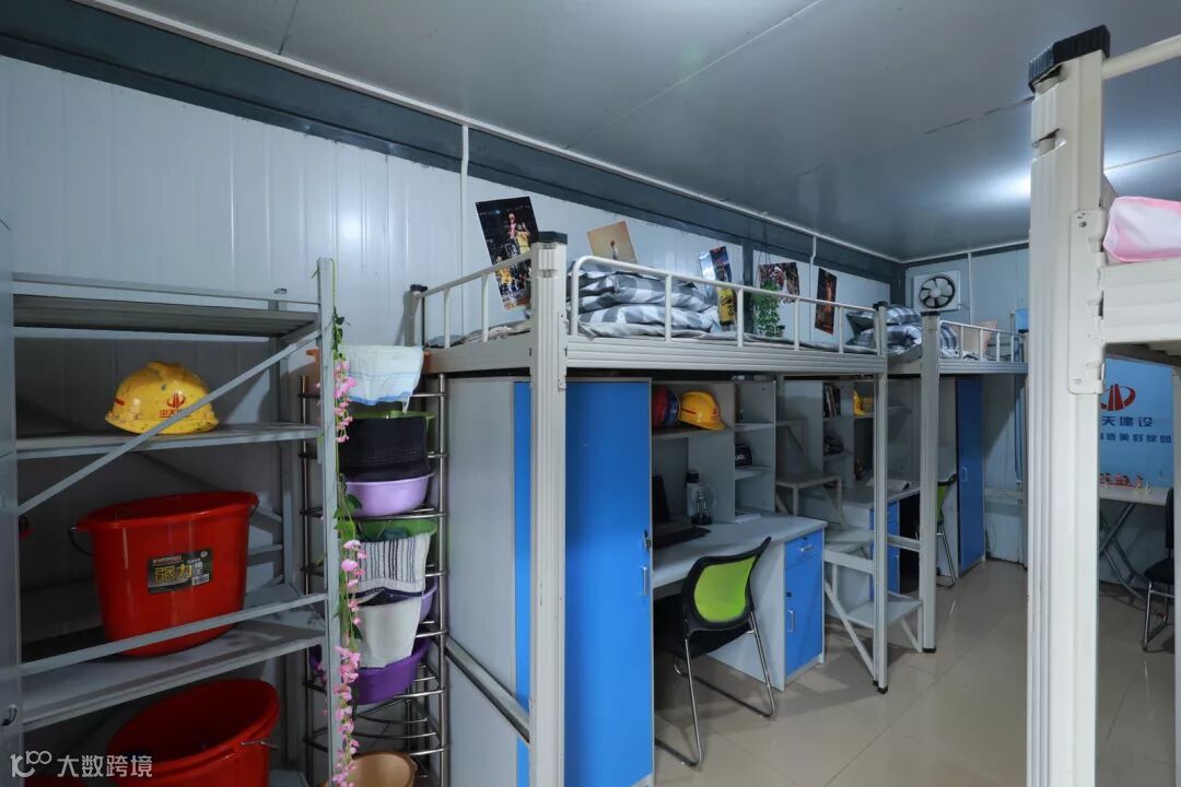 生活区位于项目西侧,面积2500平方米,配备52间集装箱式住房,现有150人居住,主要为项目管理人员以及直属工人。