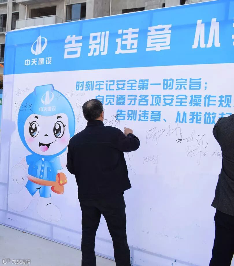 演练开始,项目安全主管吴东东带头宣誓,全体参会人员起立聆听,并邀请参会领导一起参与“告别违章”签名活动。