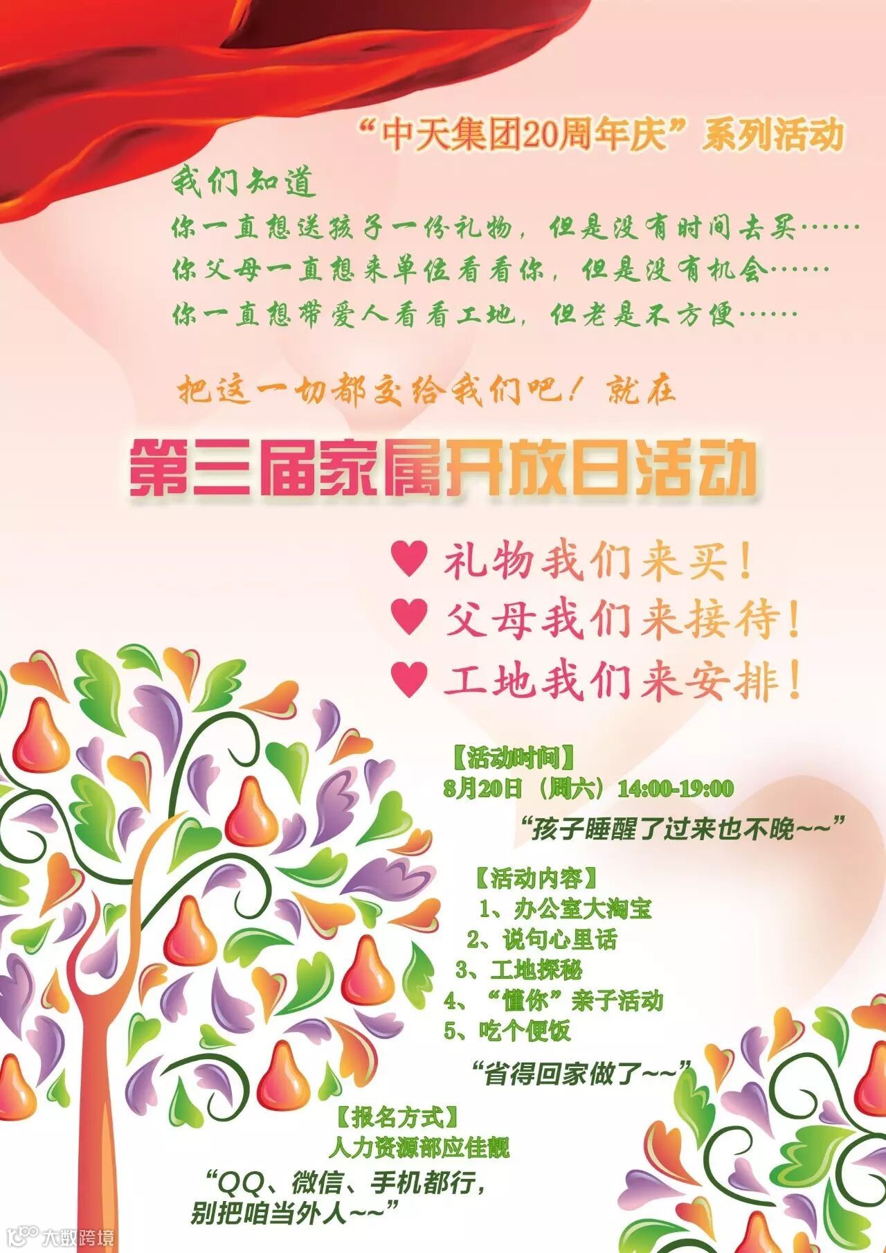 导读:8月20日,中天七建举行第三届家属开放日活动。礼物我们来买,父母我们来接待,工地我们来安排,赶紧带上家属来参加吧。