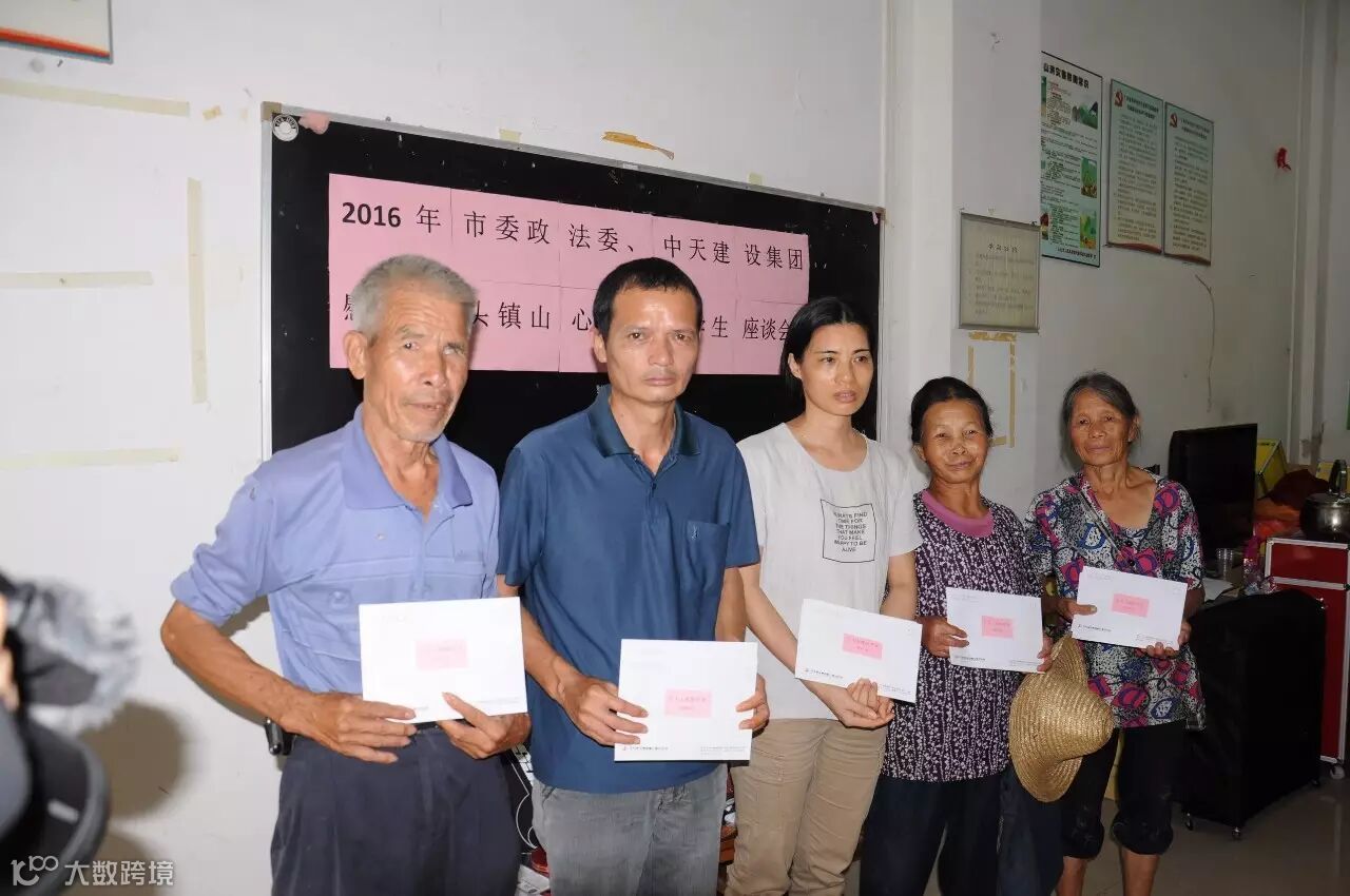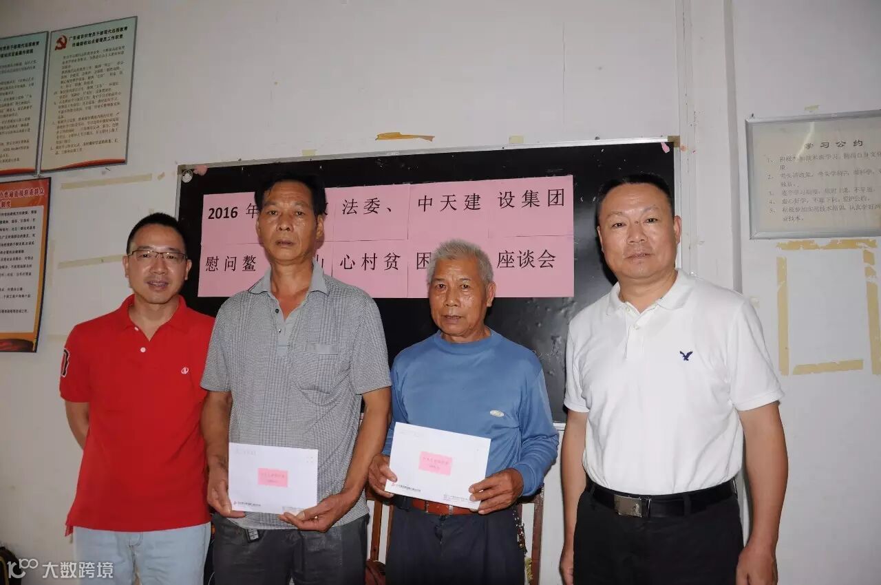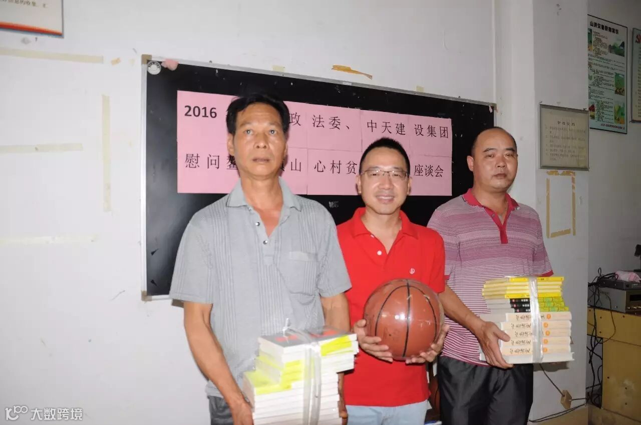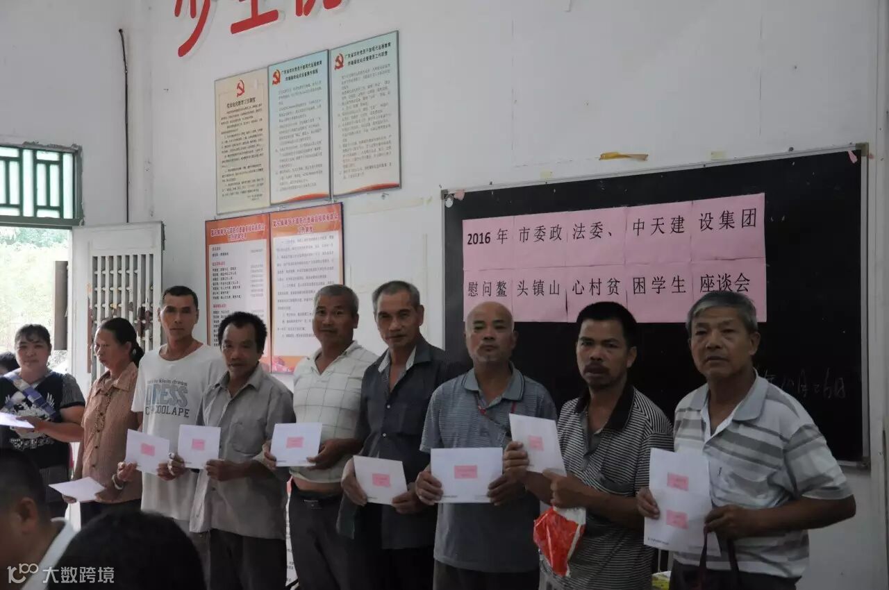 当天下午3点,在山心村村委办公室,举行了2016年广州市政法委、中天集团慰问鳌头镇山心村贫困学生座谈会,广州市政法委专职副书记、维稳办主任丁志强,中天建设集团副总裁、七建总经理吴险峰,以及广州市政法委其他领导、从化区鳌头镇党委和派出所代表、山心村党委和贫困学生家长代表近40人参会,广州市政法委机关党委副书记徐德胜主持会议。会上,广州市政法委、中天七建共同为当地29名贫困学子发放了2.46万元的助学金。因为学生上课,助学金由家长代领。