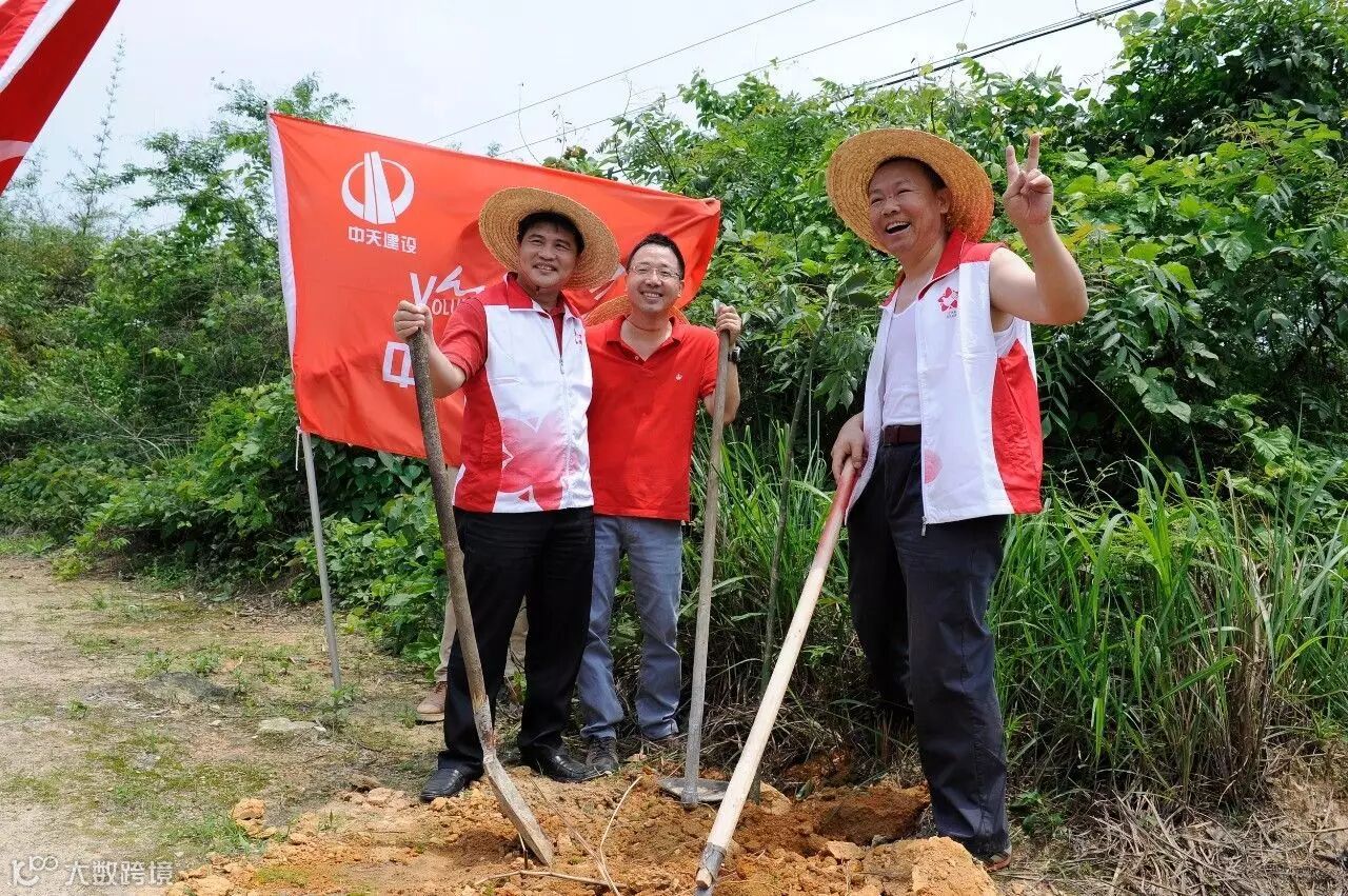 广州市政法委和中天七建的扶贫植树志愿者们在此处顺利会师,刚种下的木棉花树有幸成为见证者。