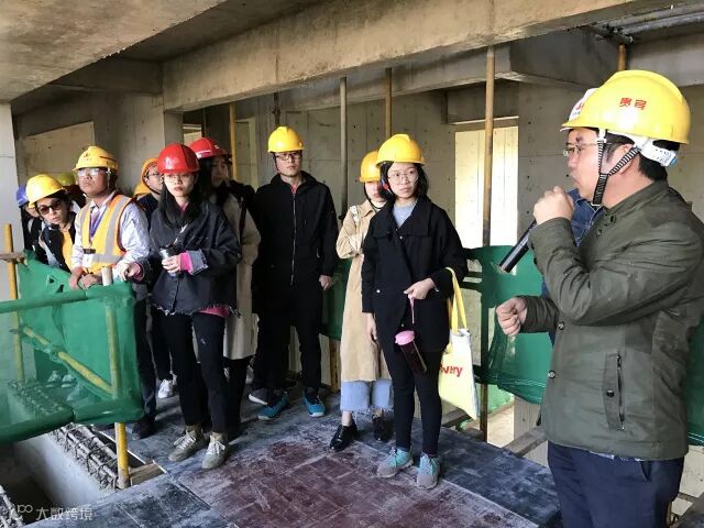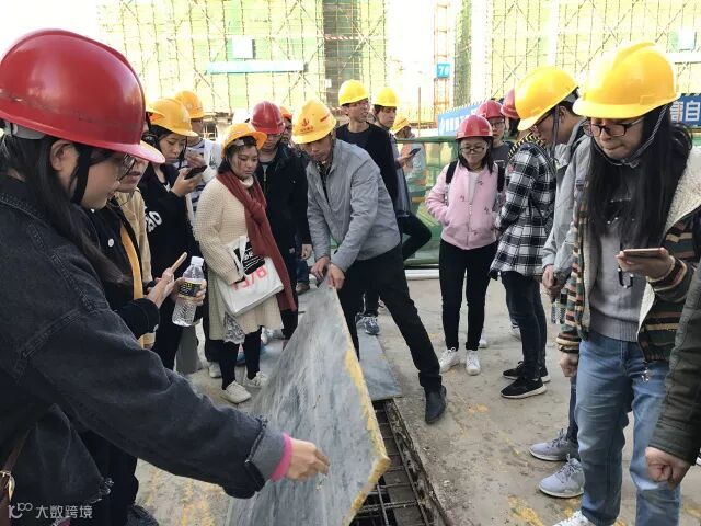 随后,师生一行在项目管理人员带领下,对施工现场进行了重点参观。质量工程师赵明担任讲解员,对生活区的场布、定型化门卫室再到项目现场的长达40分钟的参观,都做了详细的解说,如大型机械设备、卸料平台的用途和使用注意事项,以及外架验收合格程序等。他还着重介绍了主体结构质量管理措施,并强调施工现场一定要严格执行事前、事中、事后过程管控,以此保证过程质量。参观过程中,现场管理人员还详细解答了每一位同学提出的问题,让海大师生对工程的现场施工和管理有了更直观的认识。