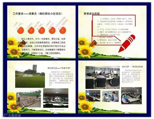 本次答辩会历时三个半小时,8名大学生的工作汇报及PPT制作给参会人员留下了深刻印象。他们在项目部上工作忙碌,有时候还要通宵打混凝土,有的还因为项目部设备原因需要到网吧才能完成PPT,但这些都没有成为他们马虎应付的借口,反而让评委们真切地感受到他们对这次答辩会的重视和用心准备。其中有“颜值”超高的ppt让评委赞叹的,有工作总结十分到位的,也有充满积极阳光正能量的。
