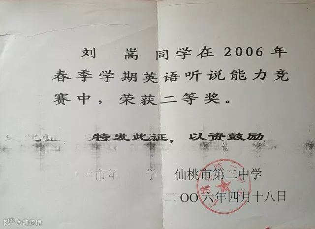 作者学生时代的奖状