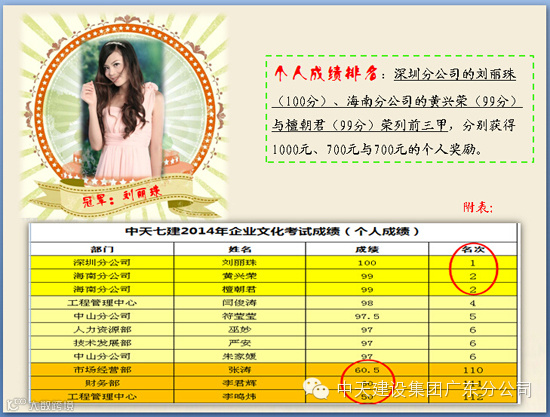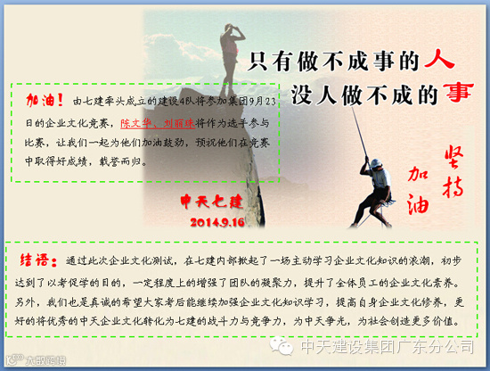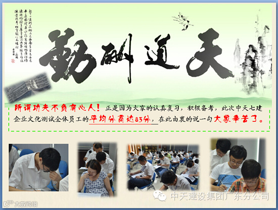 【公司活动】关于中天七建2014年度企业文化知识测试成绩公布的通知