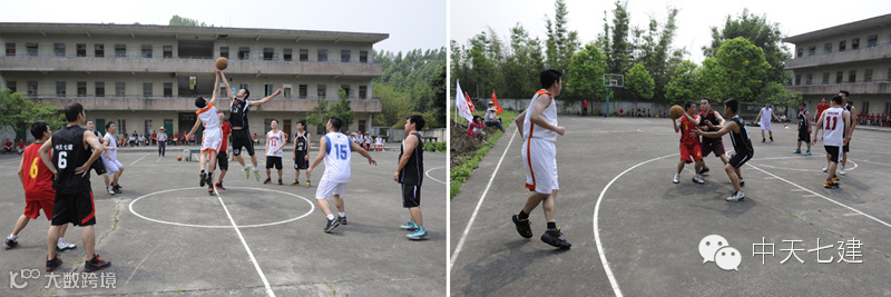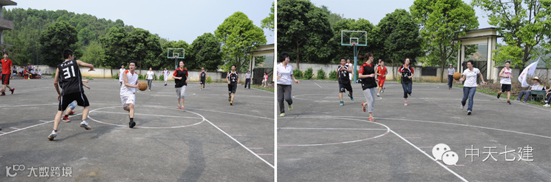 按照双方约定,前两节篮球比赛,大家派出的都是5名男子队员,由于实力相当,双方打得都比较强硬。广州市政法委篮球队在6号的带领下能突能抢,整体投篮命中率也很好,前期甚至将比分拉开到两位数。而由段少林、赵志国、黄梧州、梁海文、吴海斌、曾祥忻、龚喆(金色梦想项目部)、欧亦谦(金色梦想项目部)等组成的中天七建篮球队在前期投篮命中率低的不利局面下,更多强调团队合作,加强传切配合和篮下进攻,很快扭转了颓势,缩小甚至反超比分。就这样,双方你来我往,比分也是交替上升。