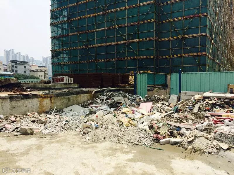 笔者:我看新建楼层旁边有个垃圾材料堆,量挺大的。