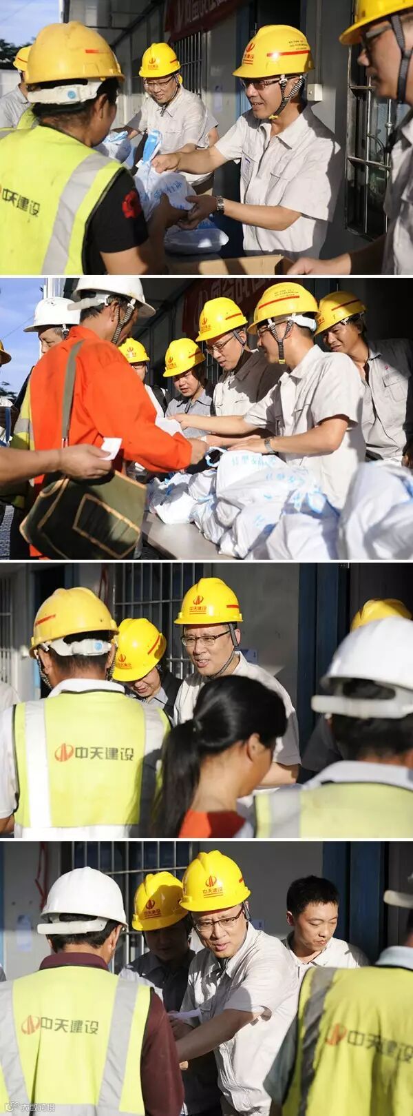 慰问组本着务实、高效的作风,为不影响工人的正常工作,慰问物品均在工人下班时间进行派发。杨总与一线员工握手聊家常,对他们坚守岗位、辛勤工作,有力保证生产经营目标顺利进行表示感谢。集团领导的关怀让一线工人在酷暑中感受到了一丝舒心的凉意。慰问组同时对项目安全生产、项目管理标准化及关爱民工措施进行了细致的检查,并和项目管理人员进行探讨,提出改进建议。
