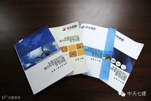 有人会说,项目部太忙了,工期、质量、安全哪一项不需要操心的,项目人员的管理更是千头万绪,哪里还有多余的时间办月刊,可是却有一个项目部想到而且做到了,是的,它就是我们正在参观的东荟城B地块三期项目部,2013年6月,中天七建第一本由项目部自行编写的月刊从这里诞生。