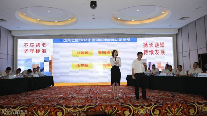 为提升七建项目经理管理能力,中天七建首次以项目经理群体为对象举行的知识竞赛。项目经理分为五支代表队,通过知识必答、看图找茬、知识抢答以及风险题四个环节的角逐,最终广佛代表队夺得一等奖。